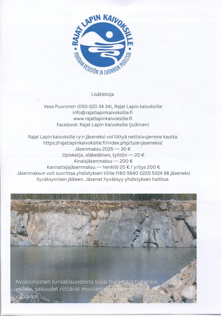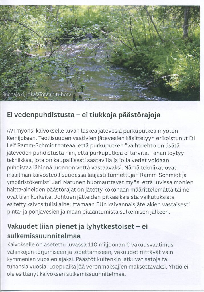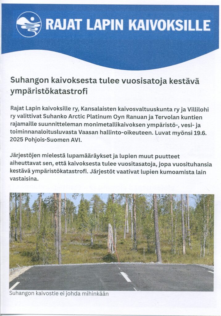 Esitteemme Suhangon kaivoksen ympäristö ja vesiluvan ongelmista.